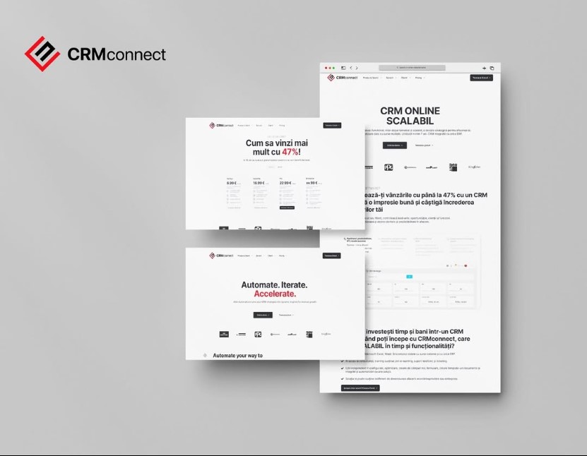 Website-ul CRM Connect este o platformă custom, creată de la zero pe baza unui design modern realizat în Figma. Am integrat un layout clar, o navigare intuitivă și o estetică profesională care reflectă identitatea brandului și funcționalitatea sa. Structura este gândită pentru a susține conversii și a oferi utilizatorilor o experiență rapidă, coerentă și responsive pe toate dispozitivele.